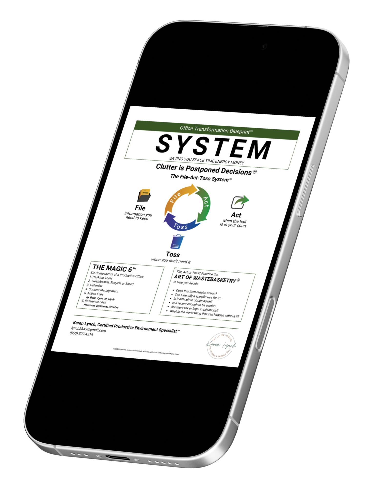 I knew she was good at the psychology of decluttering. What I didn't know was that there was this system that would enable me to have the info I needed, easily, when I needed it, and not have it be weighing me down. Karen has introduced me to this system and trained me to use it in one multiple hour stretch.
